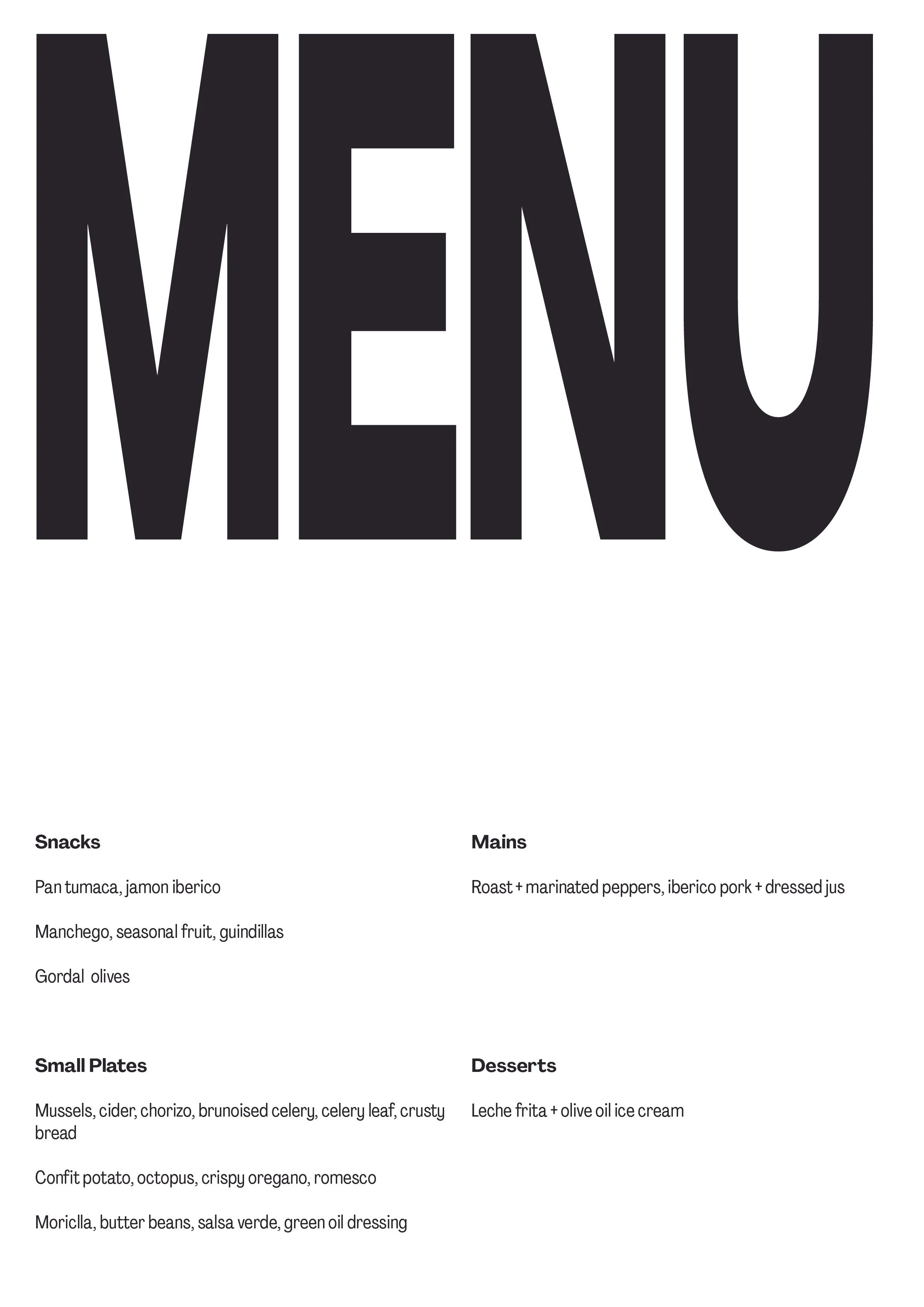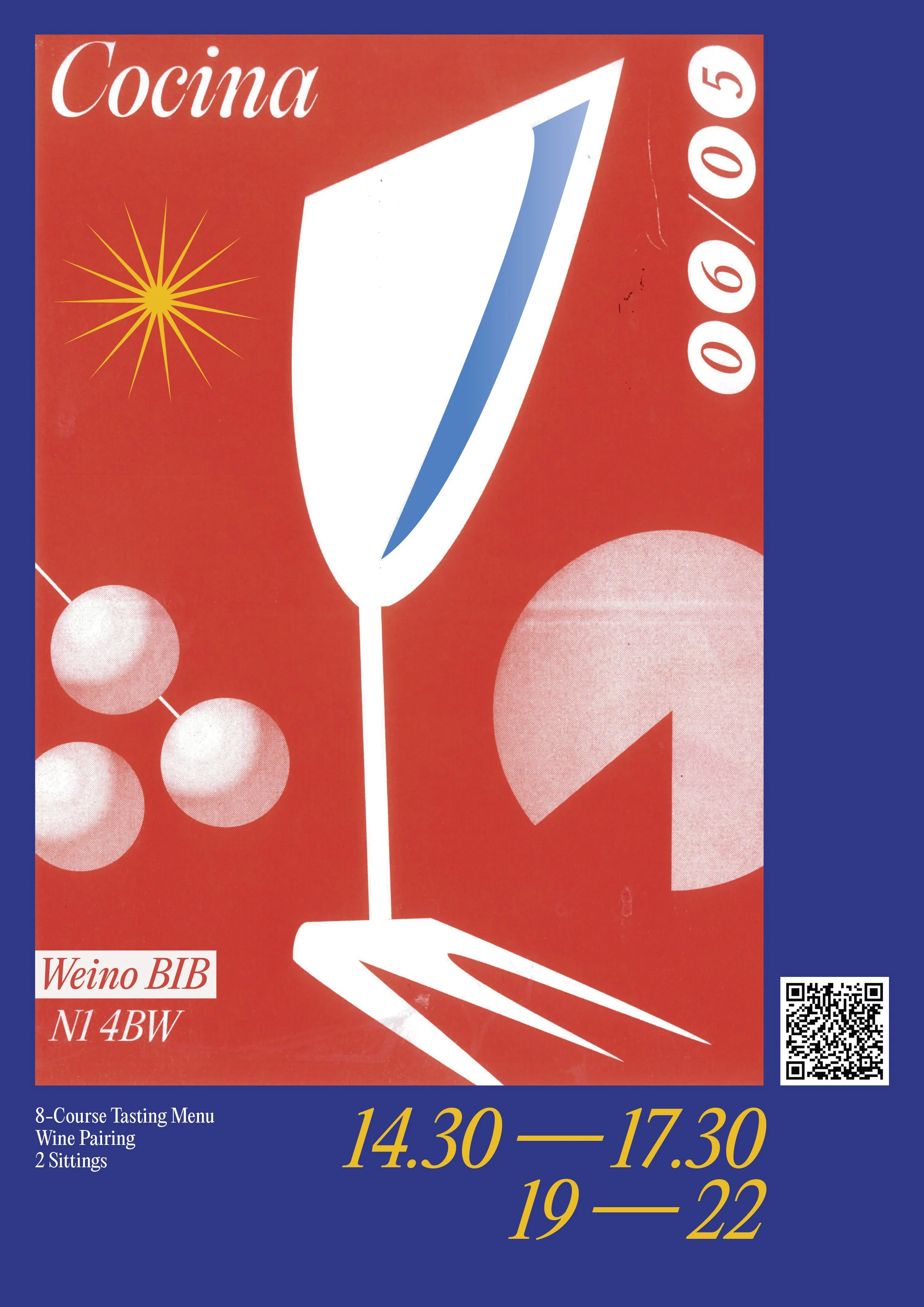 Cocina was a self initiated project that I created with my friend Lucas. Together we hosted a pop up, showcasing a set menu featuring food inspired from Lucas' childhood. I wanted to combine my love for design with my passion for hospitality, whilst also bringing together people and community through a shared love of good food and natural wine. I designed the poster, menus, event page, and hosted the night.